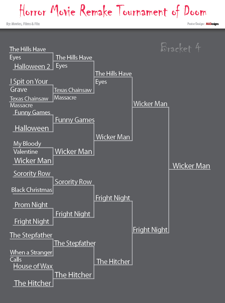 John: Sounds like you liked The Hills Have Eyes a lot. So did I. I guess when they called the TKO in favor of The Wicker Man I was out of town and you were still asleep from watching Black Christmas.