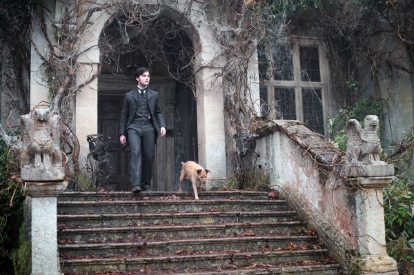 Ratcliffe plays Arthur, an alcoholic English widower who is leaving his small boy for a few days of work out of town. He is a lawyer charged with auditing a dead woman’s estate to ensure that a final will and testament is held. His arrival to the small town is met with unwelcome. The local tavern “lost” his reservation and has no room available except for the attic where, in the opening scene, we saw the three young daughters of the tavern keepers commit synchronized suicide.