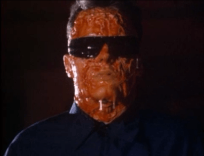 “Don’t let him use his hand!” yells the needlessly helpful cyborg with a face like a month-old calzone.