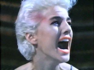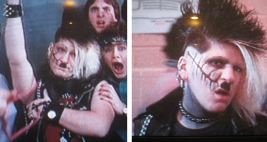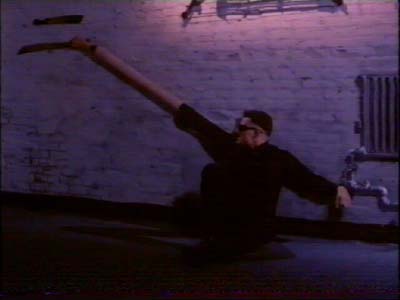 Although I deliberately neglected to share the details, this flick features an awful lot of plot. So sad that there’s really no follow-through. So the fights sucked, the writing was clearly deplorable, and the actors often seemed to be reading straight off of idiot cards. The director got one thing right, though: the random punk girl. Every movie about a post-apocalyptic future, zombies or cyborgs needs a random punk chick. Return of the Living Dead had Linnea Quigley dancing murderously-nude on a tomb, Return of the Living Dead 3 had a whole movie about falling in love with a neo-punk zombie chick, then Cyborg, Bladerunner, Escape from New York and Mad Max Beyond the Thunderdome had legions of them, and Class of Nuke’em High, Street Trash, Robot Holocaust and Mutant Hunt all feature the very same one: Chris McName—evidently she’s actually a he.