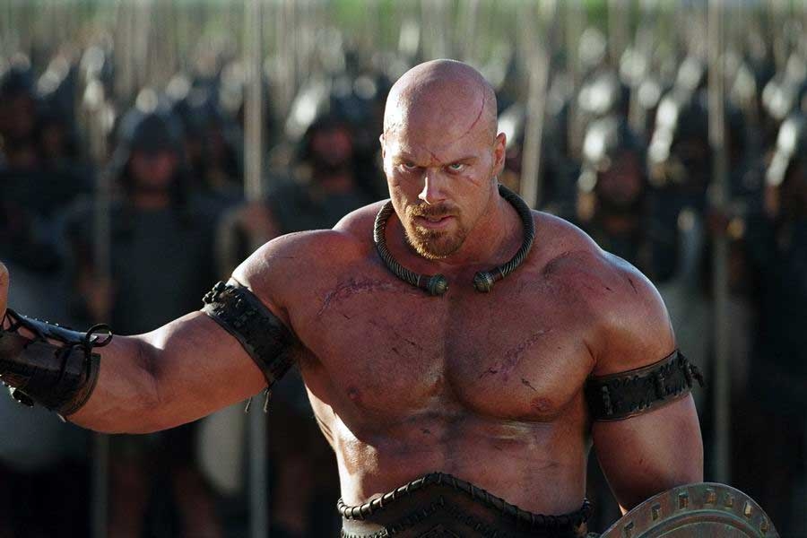 Boagrius is played by Nathan Jones (Charlie’s Farm), a monster of a man at a lean and mean 6’11”/360. Most likely type-cast as “over-sized muscular warrior guy” he has menaced the screen in Conan the Barbarian (2011), The Condemned (2007), Fearless (2006), The Protector (2005), Jackie Chan’s First Strike (1996) and even Mad Max: Fury Road (2015)—meaning he has faced Jason Mamoa, Steve Austin, Jet Li, Tony Jaa (Ong-Bak) and Jackie Chan! Not a bad resume for a Big’n’Tall baddie.
