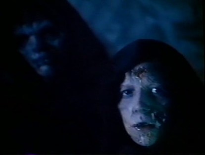 The holy shit moment of the movie: So, after collecting some souls she returns to the sewer to feed her zombies. To do this, she performs a short ritual during which the zombies literally stare at her while she’s topless. Then she grows four more breasts—yes, I did just say those words—she grows four more breasts which secrete the liquefied gooey goodness that is human soul so that she can sloppily breast feed more than two zombies at once—I guess they’re not very patient. Because everybody knows that zombies breast feed on gooey souls, right? Oh, and of course we see this oozing breasty six-pack more than once in the movie. You know, just to drive the point home of how important this minion nourishment task truly is. This is every bit as awful as the giant semen hot tub in Breeders…just shameless. However, on a completely different note, I would like to point out that this was released years before the three-breasted woman graced the silver screen in Total Recall(1990, 2012). This isn’t the only prophetic moment of the film either.