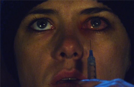 A woman murders vagrants and “extracts” their final visions as their lives flash before their eyes…literally, with a syringe. Then she injects the fluid into her own eyes so that she may experience them. MY CALL: This was clearly the coolest of the short films. The premise, while loaded with in your face nonsense/non-science, was interesting and the extraction and injection scenes were uniquely hard to watch–not for the feint. No joke!