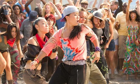 Together Sean (Ryan Guzman in his first movie) and Emily (SYTYCD‘s Kathryn, who looks a lot like Eliza Dushku) mix his hip hop street savvy with her contemporary style. Born two worlds apart, but they’re one of a kind…yeah, it’s that kind of “rule-breaking” hip flick. He says things like “trust me” and “meet me here at this time…and wear something nice.” How mysterious and romantic, right? He wins her romantic passion by introducing her to his life’s passion: hip hop flash mobbing.