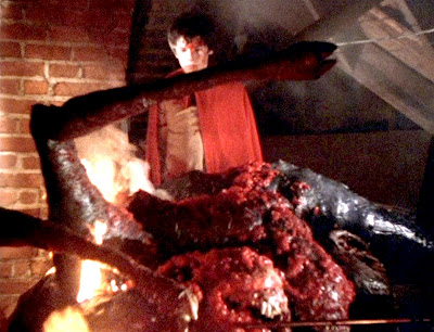 In the end the preteen single-handedly defeats the monster with a screwdriver, a sky pole, a Halloween mask and an extension cord in one of the most painfully drawn out monster kills in monster movie history. It’s like MacGuyver but without the awesome. The final scene is laughable, but it works given the budget and humor of the movie.