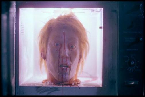 This flick wastes none of your time. Before we’re 20 minutes into the running time a couple of pranksters intruding in the wrong abandoned house meet horror-humorous fates: a decapitated head exploding in a microwave and a killer window cuts a guy in half.