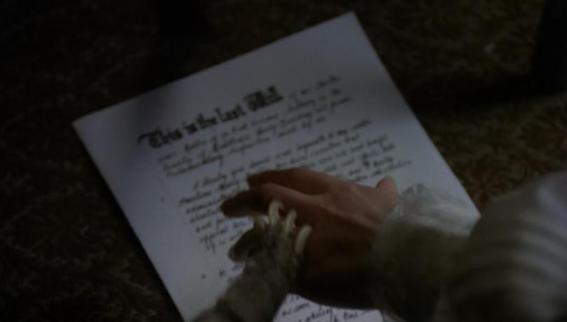 This woman’s housekeeper conspires with the disinherited nephew to steal the will. But the cats aren’t having it! Clips of cats running down stairs and jumping from landings simulate their assault of the villainous housekeeper, who is increasing scratched and bloodied between shots of rather calm looking cats. It’s really bad and completely unconvincing. It gets worse when the cats have her trapped in the pantry, as if waiting out her food supply until she must emerge to accept her clawed fate or starve to death. Anyway, she gets hers and we get some fun, brief gore.