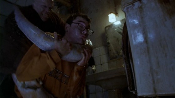 Separated from Barbara early in the movie, our protagonist Paul strikes me as the first person to die in a typical horror movie. True to Lovecraftian form, he is weak, pale, neurotic, desperate and scared. That said, Paul is perhaps the most credibly pathetic horror protagonist out there. However, unlike The Re-Animator and From Beyond, this movie takes itself quite seriously. The Re-Animator and From Beyond reach such outrageous levels of ridiculousness that they start to feel cartoonishly crazy, whereas Dagon is focused and never farcical–but quite “out there.”