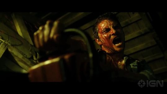 The Evil Dead playbook includes elements like reading from the wrong damned book, running through wall crawlspaces, erratic POV chases in the woods, tree rape (for lack of a better word), entrapment in the woods, untrustworthy mirror images, laughing deer heads, slamming doors, chainsaws, severing of “infected” hands, the famous bite on the hand from an infected significant other, burying your significant other, the rise from the dead of your significant other, the possessed pretending to be human to appear vulnerable, singing in the cellar…oh, and about 110 gallons of liquid gore! Might I add, it’s all real gore, not some CGI spray coming from CGI demons.