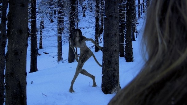 Much to my surprise, Silje Reinåmo spends a lot of this movie at least partially naked, portraying the serious and challenging role of a creature that doesn’t speak but is filled with fear and curiosity. She communicates a powerful range of emotions with her physical demeanor, facial expressions, and especially her eyes. She does a fantastic job with her almost alien expressions and movements that resemble a feral, animalistic early adolescence. This role reminds me of Jenny Spain‘s starring role in Deadgirl (2008), during which Spain faced even more challenging and limiting restrictions.