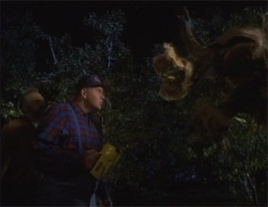 It’s up to Tom, Heidi, a disturbed alcoholic scientist, the sheriff and teenager Kim (Holly Fields; Wishmaster 2, Communion) to save the town–and the world–from these stumpy alien veggie beasts that are trying to seed more lands and harvest Earth’s people.
