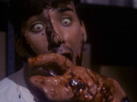 This movie really covered its crazy bases.  1) It was made by an experienced schlockmaster and stars both a future prolific porn star and a prominent scream queen.  2) It rips off a classic and actually manages to do an entertaining job of it.  3) It goes so into the deep end of bonkers that it took ideas from Prometheus (2012) and Alien Resurrection (1997), and then traveled back in time to 1987 to pawn these ideas off as original.  They should probably sue those other movies’ filmmakers for taking their ideas.  4)  This mutant monster movie was so infectiously bad that it mutated actress Kim McKamy into porn star Ashlyn Gere.  5) Oh, and there’s an evil fetal baby alien action finale!