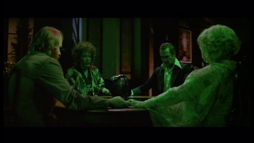 Oh, but the plot thickens. The doctor who “wrote the books on tumors” now says the tumor is a fetus. In an attempt to link the tumor-fetus to the recent possessed mutterings of Karen and the old lady, Harry turns to Amelia, his psychic mentor. They perform a séance to find answers and it turns out that the tumor-fetus represents a Manitou, the immortal spirit of a 400-year old Native American medicine man. To learn more they seek the man “who wrote the book” on Manitous, anthropologist Dr. Snow (Burgess Meredith; Rocky I-III, Twilight Zone: The Movie).