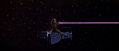 Regarding this finale, let me just say… You haven’t lived until you’ve seen a buck naked Susan Strassberg on a floating bed shooting colorful cartoon laser beams from her Jazz Hands at a demonic afterbirth-entrenched midget in an extradimensional outer space setting. It’s as if the filmmakers wanted to combine the space sequences from Flash Gordon with the demonic possession scenes from The Exorcist and then add a dash of Saturday Night Fever.