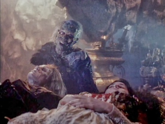 Michelle’s sister Becky (Melanie Shatner; The Alien Within, Subspecies III, Star Trek V) narrates as this sequel picks up immediately where Subspecies II left off: After defeating Radu (Anders Hove; Subspecies I-IV, Critters 4), Becky must wait until dark to escape with her vampire sister Michelle (Denice Duff; Subspecies II–IV, Night of the Living Dead 3D: Re-Animation), who is abducted in the final moments by Radu’s “Mummy” (Pamela Gordon; Weird Science, Poltergeist II, Subspecies II, Alien Nation), a crone-like ghoul akin to an unwrapped mummy.