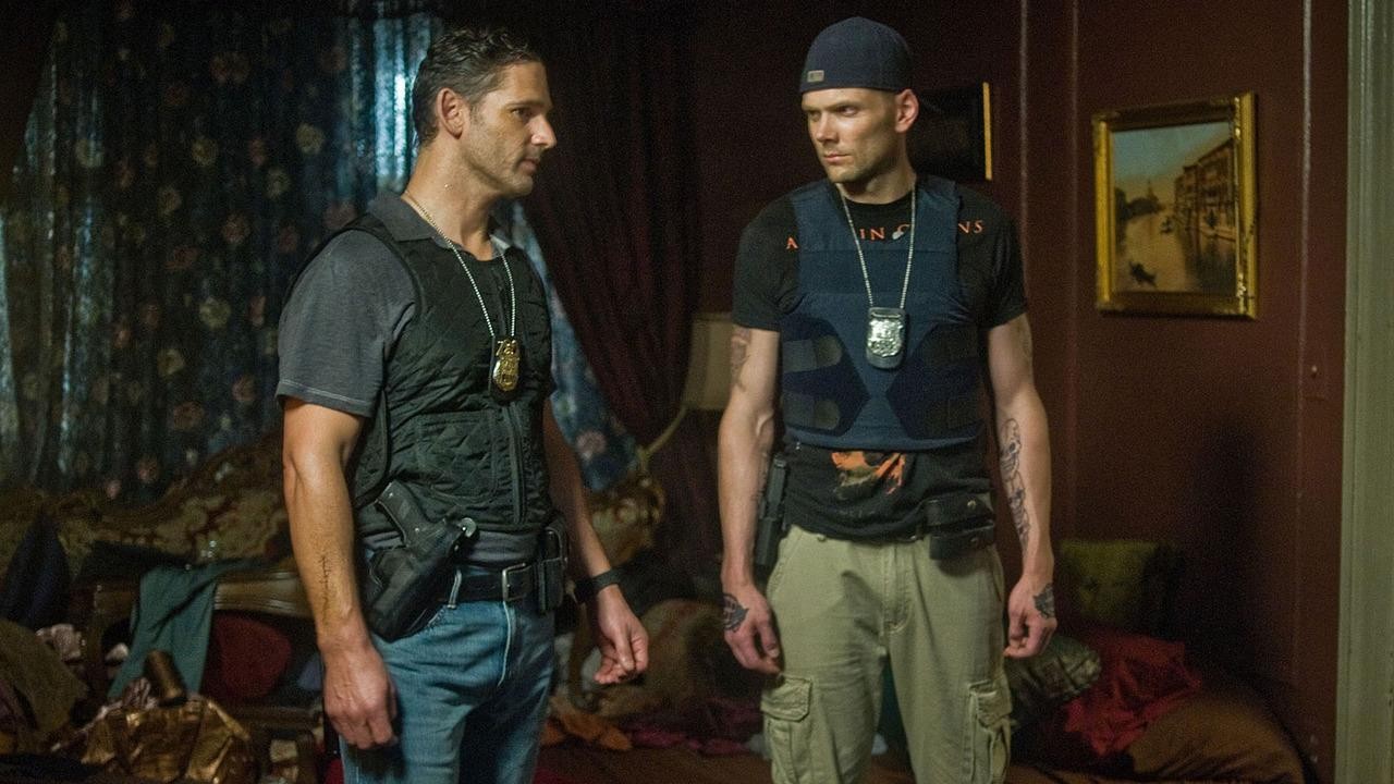 As we slowly accumulate clues Sarchie starts hearing things, seeing things, weird things are happening in his home, and everything gets really… “satanic.” Scratching sounds abound, lights burn out as if extinguished by evil, chiseled bloody fingernails on perps, insane Latin babble, and dark etchings on walls set an abyssal tone and it is effective for the most part. Realizing the darkness that has befallen him, Sarchie chooses to work with Mendoza, who is (of course!) well-studied in demonology and exorcism.