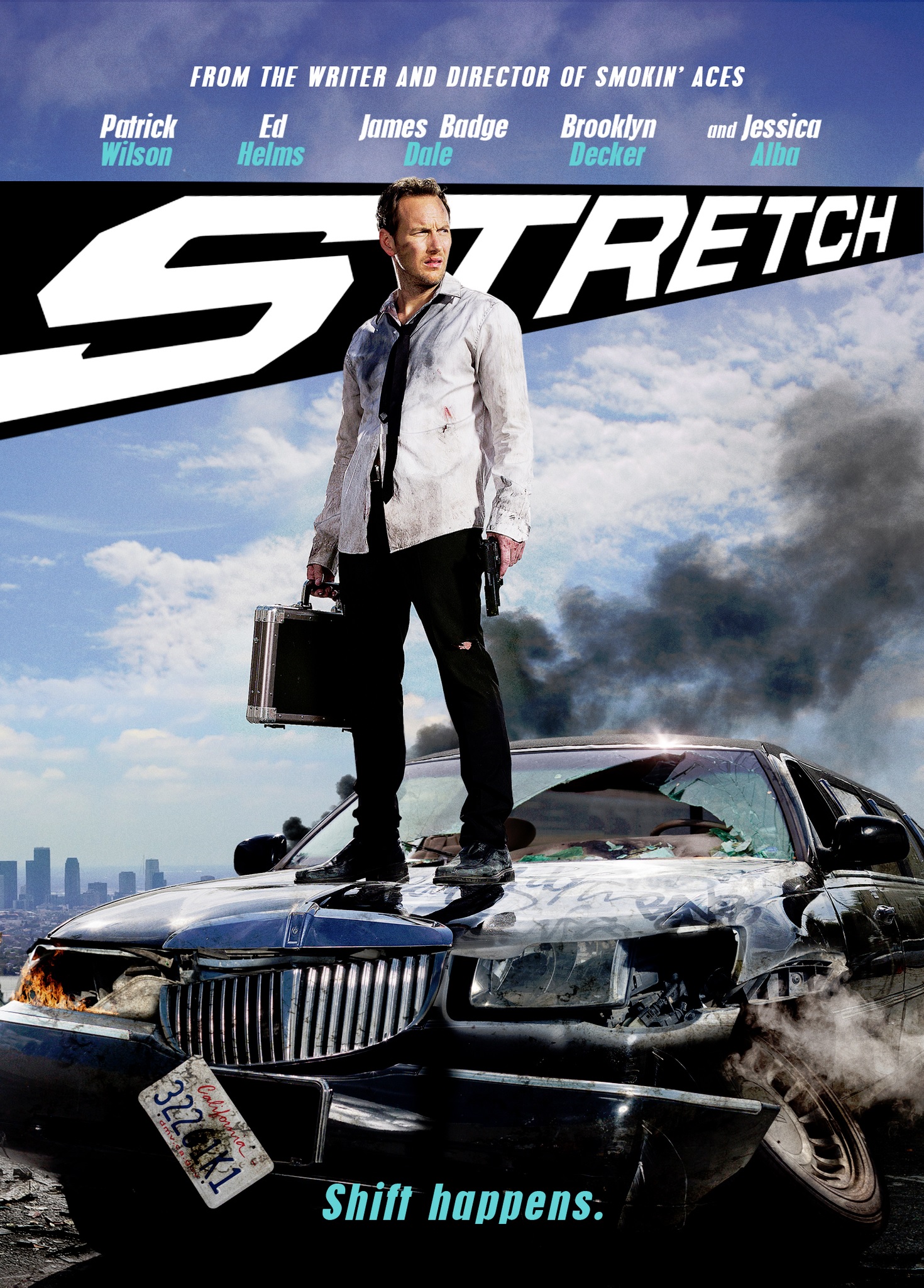 The film revolves around a limo driver having a very bad day. He is broke and needs to pay off his gambling debts by midnight. He is still in a funk after being dumped by the love of his life played by the very likable Brooklyn Decker. He is close to being fired at his job where the only saving grace is the very very likable Jessica Alba. Stretch is constantly haunted by the ghost of former co-worker Karl (with a K) played by Ed Helms. Karl was the best limo driver in LA until he shot himself in the head during a routine drive. Now, the mustachioed Karl pops up during the worst moments reminding Stretch of what he could become.