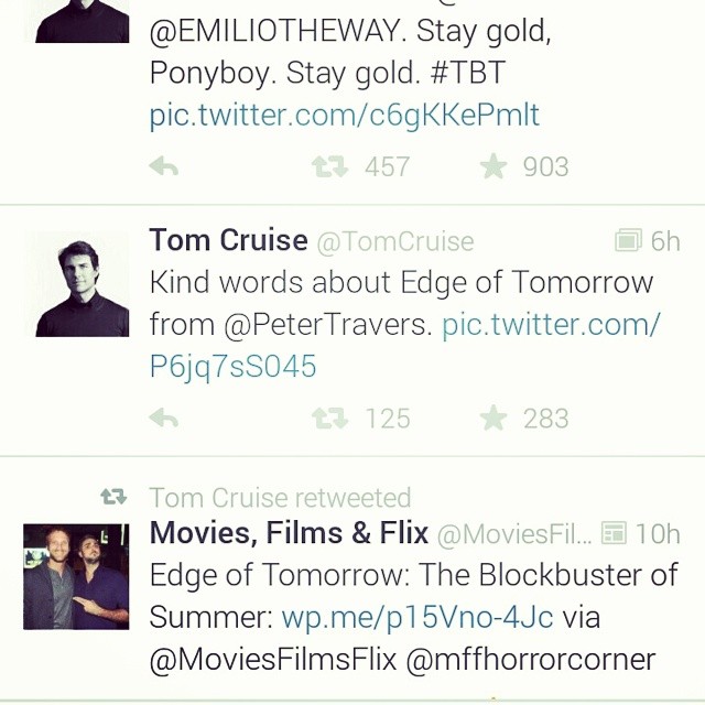 I still think it is pretty awesome that Tom Cruise Retweeted my Edge of Tomorrow review.