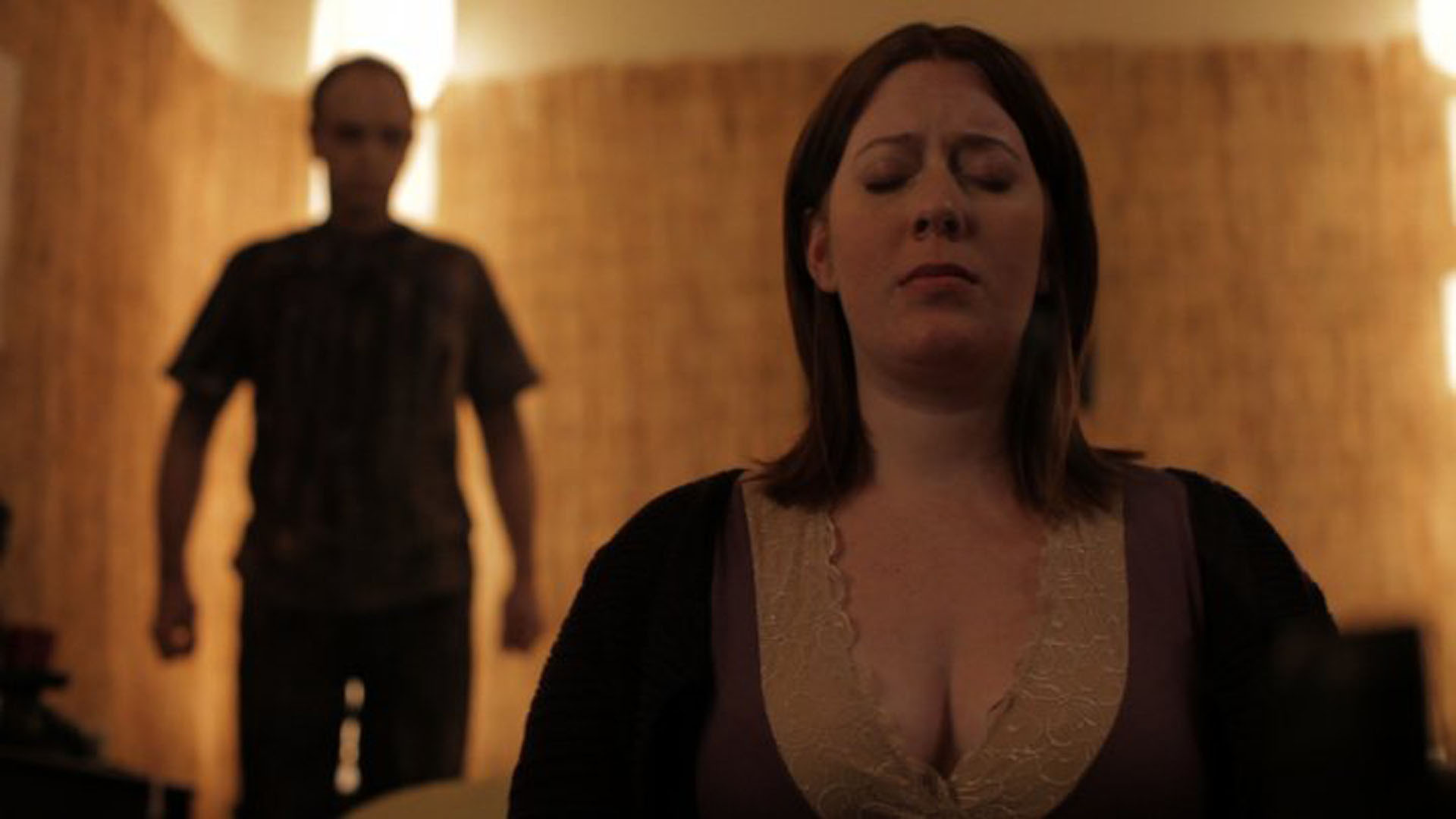 At its start I feared my original concerns would come true.  I recognized none of the actors and I could tell it had a low budget (which isn’t necessarily a bad thing).  I just figured this would turn out to be some haunting story brought upon by some past misdeed of the main character, a pregnant woman whose husband has been missing for 7 years.  But this was nothing of the sort.  The story begins very simply: Callie moves in with her sister Tricia when Tricia is forced to sign papers declaring her husband (who has been missing for 7 years) “dead in absentia.”  However, instead of finding closure, Tricia’s inner conflict continues as she is apparently haunted by her husband’s tormented spirit.