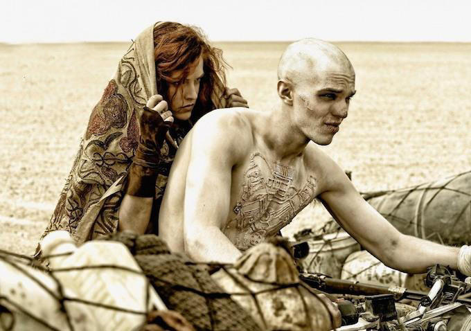 Our antagonist is the tyrant Immortan Joe, played by the very same actor (Hugh Keays-Byrne) who played the villain “Toecutter” from Mad Max (1979). Joe rules by controlling the water supply and motivates his gullible and devoted minions called “war boys”—covered with almost tribal body modifications like body paint, piercings, ritual scarrings and brandings–with promises of an afterlife in the paradise of Valhalla, and as such they are ready (even excited) to die in battle serving their warlord.