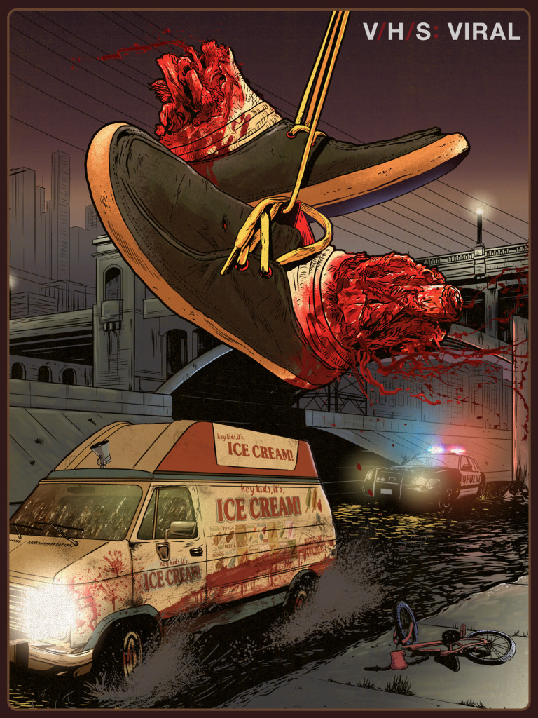 Overarching Story. This opens with scattered videos of a man recording his girlfriend. They seem quite happy until their clips lead to a terrible accident in which his girlfriend disappears and suddenly calls his phone–flickering in and out and apparently in trouble (via Skype call). Everything hereafter strangely seems to revolve around a police chase with an ice cream truck as people who the boyfriend knows keep dying in weird ways as we go from story to story. Meanwhile, this story continues intermittently and then concludes the anthology.