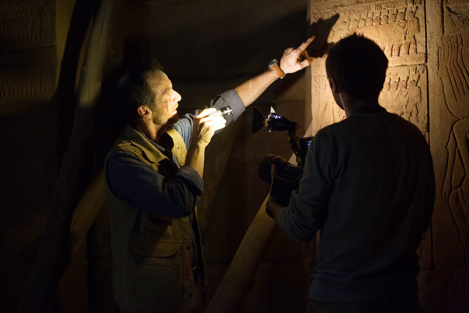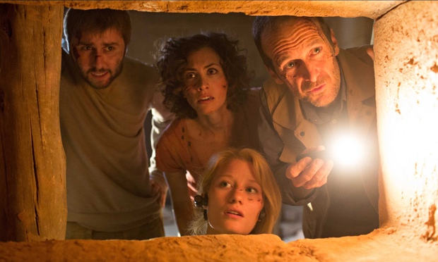 With the same playful and cheeky approach of The Last Exorcism (2010) and Grave Encounters (2011), this film opens like an upbeat documentary about an anthropological expedition that would air on the Discovery or History Channel. A team of scientists aim to excavate and explore a completely buried pyramid whose age predates most Egyptian history, indicating possible extraterrestrial origins for this uniquely three-sided pyramid (others being four-sided) and nods to the SETI program (Search for Extraterrestrial Intelligence). With one archaeologist being an extraterrestrial skeptic and his daughter the “alien hypothesizer” we find satisfying witty exchanges that stage not only their character dynamic but the story itself. At this point, the film has promise.