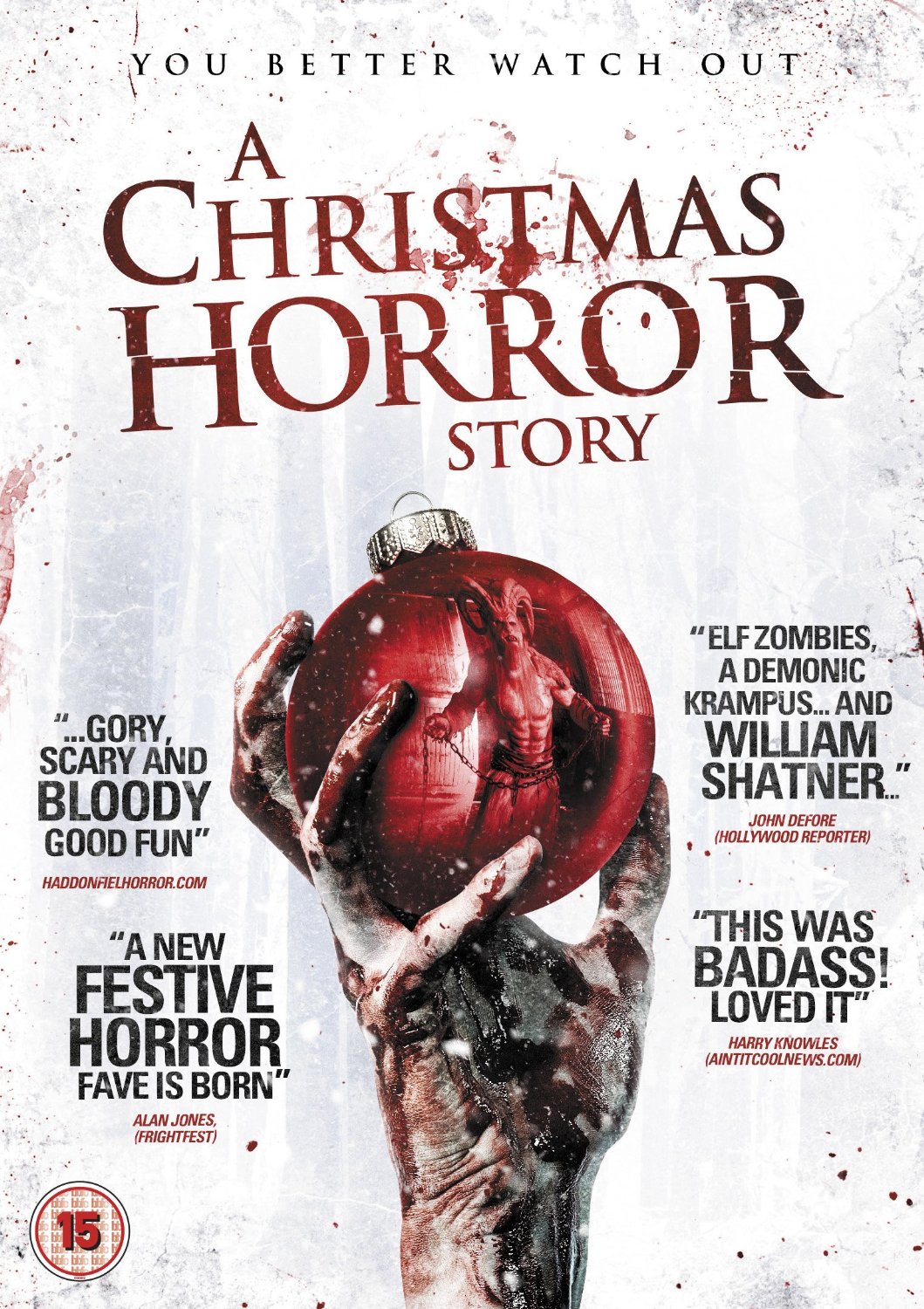 MY CALL:  If you’re looking for a campy Christmas horror anthology with a berserk Santa Claus, changeling shapeshifters, Krampus, creepy kids, zombie elves and evil seductive spirits—then this is for you!  It’s a decent flick if you don’t go in expecting much. MOVIES LIKE A Christmas Horror Story: For more serious holiday horrors try Krampus (2015), Gremlins (1984), Rare Exports: A Christmas Tale (2010), Silent Night, Deadly Night (1984), Black Christmas (2006) and Black Christmas (1974). OTHER HORROR ANTHOLOGIESBlack Sabbath (1963), Tales from the Crypt (1972), The Vault of Horror (1973), The Uncanny (1977), Creephsow (1982), Twilight Zone: The Movie (1983), Stephen King’s Cat’s Eye (1985), Creepshow 2 (1987), Tales from the Darkside: The Movie (1990), Necronomicon: Book of the Dead (1993), Hellraiser: Bloodline (1996), Campfire Tales (1997), 3 Extremes (2004), Trick ‘r Treat (2007), Chillerama (2011), Little Deaths (2011), V/H/S (2012), The Theater Bizarre (2012), The ABCs of Death (2013), V/H/S 2 (2013), The Profane Exhibit (2013), The ABCs of Death 2 (2014) and V/H/S Viral (2014).