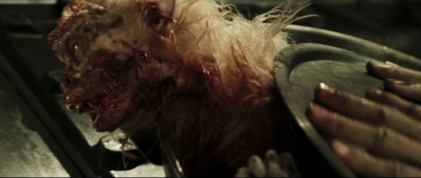 Rather than being well-intentioned, altruistic or optimistic, our scientist-commander is viciously pragmatic and his coldness borders on villainy. This operation is tyrannical by his design and, spoiler alert, all his security provisions will fail. Cue the evil zombie monkeys!!! You heard me: zombie monkeys. Zombie animals alone don’t harm the legitimacy of a horror movie, but the way they are handled here does. They start out cool, then they go overboard.