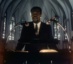 As the story weakly progresses, we get glimpses of vampirism. But this movie neither follows “the rules” of vampirism nor demons nor does it clearly lay out its own new rules. She has no reflection in the mirror, walks around in daylight, holy water gives her thrashing indigestion and the right Biblical verse will make her head explode. At one point she seems pleased to have afflicted a lecherous victim with a disease and his skin forms perhaps blistering legions–but the scene is so poorly staged that I wasn’t entirely clear if it was meant to be caused by sunlight…or if it would continue until he died regardless. But then why is she not so affected? And what the Hell even happened to that guy? Did he die? We never know!
