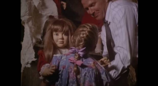 After being given a doll from the factory, their young daughter begins acting strangely. Her mother Marylin (Denise Crosby; Pet Sematary) has caught her talking to “Dolly” frequently, she draws violent depictions of animals, hisses at priests and rosaries, and speaks in the ancient Sanzian language to their devout housekeeper.