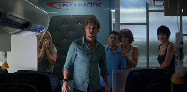 Our lineup of victims are moderately humanized and somewhat likable, but perhaps mostly because we recognize them from other HBO and horror favorites. There is a couple (Ryan Kwanten; True Blood, Dead Silence, and Amy Smart; Mirrors, Seventh Moon, Strangeland) embarking on a non-refundable couples trip with their friends who do not yet know they’re getting a divorce, a mellow young man (Jerry Ferrara; Entourage, Battleship) and his recently wed bridezilla (Scout Taylor-Compton; Halloween, Wicked Little Things, April Fool’s Day) who is not fond of their goth and fatalistic row-mate (Nicky Whelan; Halloween II), and a flirty scheister seated beside an unimpressed young lady (Christian Serratos; The Walking Dead). Meanwhile the flight attendants (Leslie Bibb; Trick ‘r Treat, The Skulls, and Jamie Chung; Sorority Row, The Man with the Iron Fists) gossip about the passengers and their love lives, one of which is involved with the adulterous pilot (Johnathon Schaech; Quarantine, Prom Night). Essentially, everyone is either lying about something, angry about something, or in denial suppressing something.