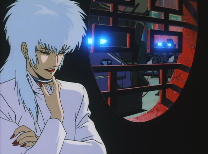 Far in the future in a world of advanced technology, spaceships and cybernetics, three criminals are offered reductions from their 300-year prison sentences for each cyber-criminal they manage to detain. When we first met Makie (Wicked City) and D (Vampire Hunter D), they had instant appeal and offered backgrounds of intrigue or mystery. At present, we are simply introduced to three prisoners: Sengoku, the androgynous Benten with long white hair and red fingernails, and the very large Gogul with a visor or sorts.