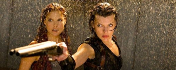Paul W. S. Anderson (Resident Evil, Mortal Kombat, Event Horizon, Soldier) returns to the beloved Zompocalypse franchise and, apparently, he thought he was directing a Matrix sequel. No sooner are we re-acquainted with Alice (Milla Jovovich; The Fifth Element, Resident Evil 1-3, Ultraviolet) than we see her in Blade II ninja gear running across walls and spiraling through the air dodging slow-motion machine gun fire as bullet casings rain to the ground, their chiming on the floor punctuated by the hum of her twin katanas as she minces her way through dozens of Umbrella SWAT guards.