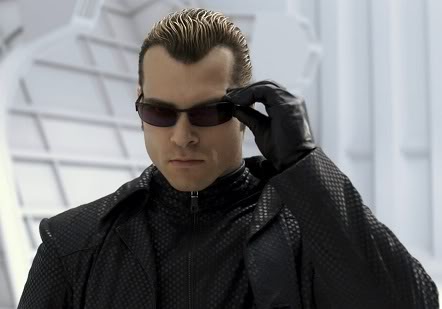 Dodging slow-motion bullets and sunglasses, the black leather-clad Wesker goes full-on Agent Smith, hellbent on “consuming” Alice as she is—wait for it—“the one” who can help him tame the T-virus. #MatrixEyeRoll