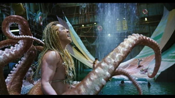 Director Stephen Chow (Kung Fu Hustle, Shaolin Soccer, Journey to the West) mixes seafaring folklore with Asian action cinema. If you think you’re about to watch The Little Mermaid (1989) meets Kung Fu Hustle (2004), just know it’s going to be much closer to the giggly former than the latter despite a lot of third act mermaid slaughter. And the action is not top notch—just passable. But Chow does deliver all the zaniness you’d expect with his Kung Fu Hustle roots. In addition to the scenes mentioned above, we have fishtail water sorcery smacking of an aquatic Dumbledore and the complete mermaid lair raid insanity including a mad marine biologist shooting machine guns and a leather-clad wealthy realty executrix (Yuqi Zhang; CJ7) giving kill orders and harpooning her business partner as if the two were employed by Doctor Evil!