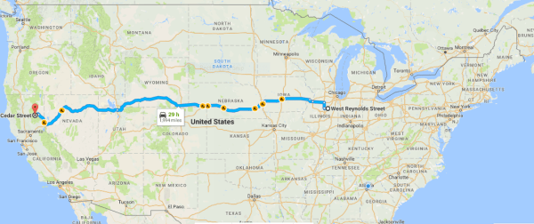 To make it in 29 hours like the map states he would have to drive 68 MPH. I don’t buy it so I slowed him down to 63.2 MPH. 63.2 X 32 hours on the road = 2.022.4. He covered 1,994 miles on the various highways and 28.4 on Highway 139 and various other roads after he found the school.