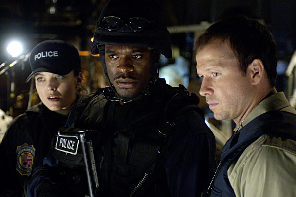 As detectives Matthews (Donnie Wahlberg; Dead Silence, Saw III-IV) and Kerry (Dina Meyer; Bats, Saw II-IV, Piranha 3D) race against time to locate Kramer’s murder house, his victims begin to turn on one another. The aspect of choice deciding his victims’ fate is less of a driving factor, now taking a back seat to their own murderous desperation. Adding intrigue is that the only survivor (Shawnee Smith; The Blob, Saw I-III/VI, The Grudge 3) from part I has returned to play another deadly game.