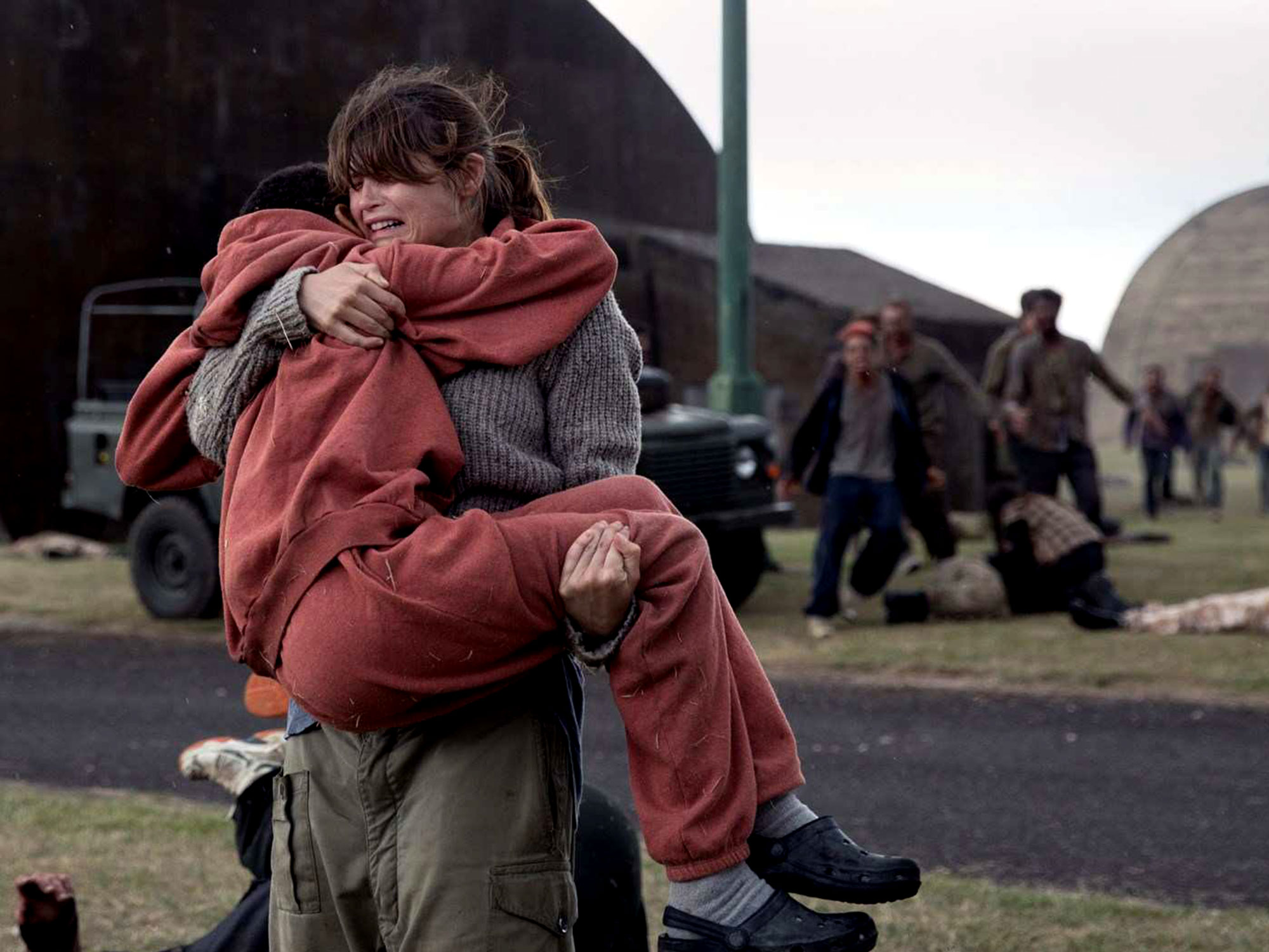 Reflecting on sympathy for the infected, consider Roger (Dawn of the Dead), afforded every minute by his fellow mall-marooned survivors to live out his humanity before his turn; or Bub (Day of the Dead), given so much compassion for the echoes of humanity hidden beneath his flesh-eating surface; or any other character altruistically ending themselves (to keep others safe) or conversely fearfully begging for every last minute after being doomed by a zombie’s bite even to the point of hiding it (a dangerous denial putting all others at risk).  Dealing with thatthe infection (not the zombie)—is this film’s focus and strength.