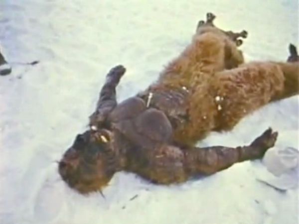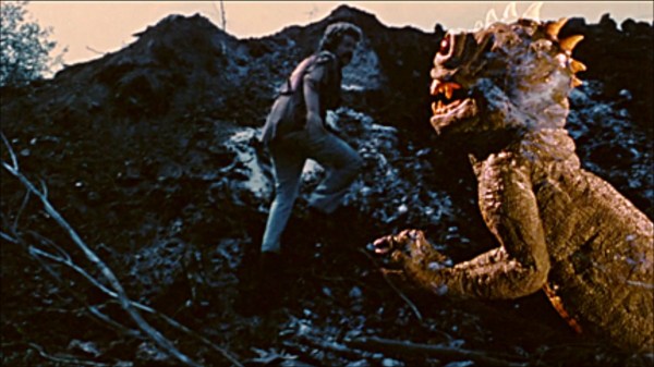 As simple as this plot may sound, it’s more elaborate than you’d expect.  And with such an obviously meager budget, I’m shocked Dohler created multiple monsters instead of just one.  This hokey monster movie features an insectoid-humanoid creature, a stilt-legged orangutan-bigfoot with beetle mandibles, a rogue ball of energy, a couple more monstrous humanoids, and a giant lizard monster which was the pinnacle of bad effects (i.e., faded rotoscoping of the monster attacking a man whose reactions don’t match the monster).