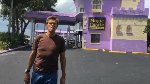 The Florida Project focuses on the denizens of The Magic Castle Inn & Suites. The Inn is located just outside the Disney parks and is home to townies and the occasional very confused tourist. The Inn is run by the kindhearted yet stern Bobby Hicks (Willem Dafoe) who has to deal with a litany of issues due to the collection of people that make their home at the Inn, and the fact that it is summer and bored kids have nothing better to do than cause trouble and annoy him. The main character is a tiny six-year-old dynamo named Moonie (Brooklynn Prince) who spends her days spitting on cars, exploring abandoned homes, mooching free ice cream and hanging out with her friends. She lives with her single mother Halley (Bria Vinaite) in a one-bedroom hotel suite and is occasionally called into action to help her mom sell stolen cologne, Disney wristbands, and other tchotchkes that help them pay their weekly rent.