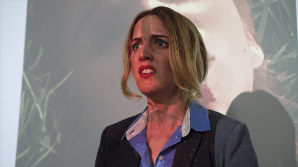 I really dig the storytelling style here, as we yo-yo between Shelby’s (Stacy Snyder; Abandoned Dead) business presentation, her mocking An American Werewolf in London-esque hauntings of her dead colleague, and flashbacks to the night she killed her colleague Clare (Joanna Sotomura; Madison County, Contracted: Phase II).