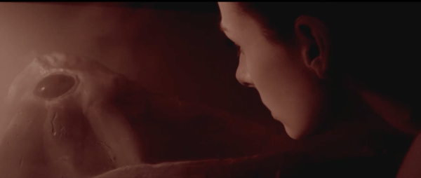 After blacking out during the dive, Olive recovers an egg that was—unbeknownst to her—hidden in her suit. Of course, this cephalopod hatches and is a mix of somewhat monstrous and somewhat cute. It spews ink and smoky clouds, looks like a Boogen octopus, and… wait for it… has a taste for human blood. What’s more, Olive seems to have some sort of empathic link to the creature, and has adopted some of its traits (e.g., aversion to bright light). Sadly, this doesn’t lead us where I expected (i.e., Bite).