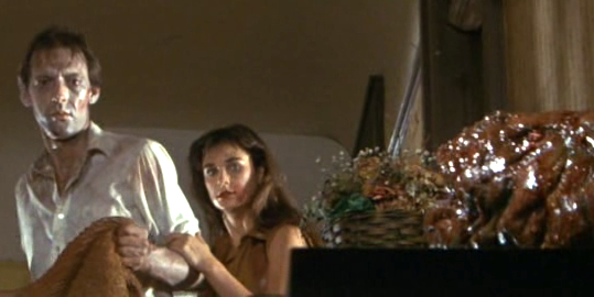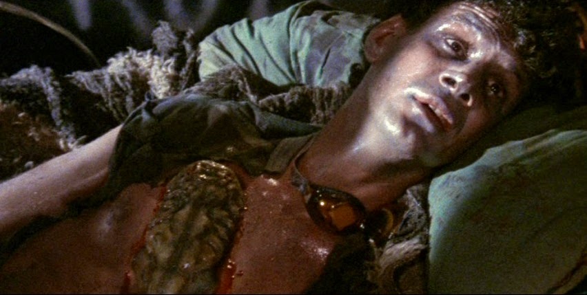 These old B-movies make me giggle so much. Welcome to “the future”—1992! The world is populated by 80s punk-gangs of miscreants, silver is the main currency, and we have laser guns! Doctor Paul Dean is wandering the modern wasteland, staying in seedy B&Bs doing hotel room research to find a cure for his ever-growing stomach parasite. But once the local gang takes an interest in him, they steal his coffee Thermus which contains a much larger acid-slimy facehugger-chestburster-tadpole thing that, of course, kills someone in a goofy creature effects scene.