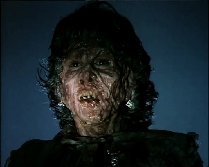 We have yogurt vomiting, pulsating flesh, toothy-mawed homages to Demons (1985) or even Night of the Demons (1988) at every turn, poltergeist-y telekinesis, some evil children turn someone into an exploding doll, there’s a Necronomicon-like diary and a backstory about raising the Devil, a cheap beguiling boob ghost temptress that turns into a melty-skinned Freddy Krueger mess of a monster, a redneck zombie murder family, loads of mustard goo bloody gore (much like Phantsasm or Slime City), a spin kick decapitation, and even a tongue strangulation scene! I should add that the demons (and their monstrous make-up) get loads of screen time. Bravo!