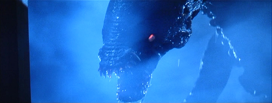 The special effects are largely blood sprays, large wounds, after-the-fact corpses, a solid face-rip and exploding head. As for the monster—the “creature” of the title—it’s quite xenomorphic in form and drool-dripping presentation. But we don’t see nearly enough of it as the rubber suited beast clunkily lumbers down hallways. Truth be told, our “creature” was the weakest link of the movie, even if it did enjoy one or two good shots of its menacing face.