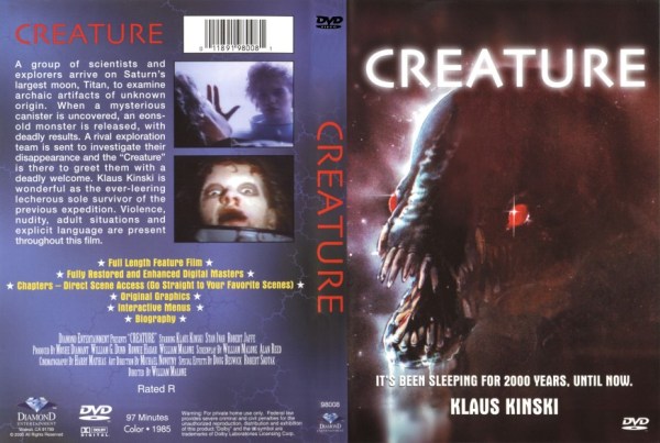 John’s Horror Corner: Creature (1985; aka Titan Find), another Alien (1979) rip-off that aims high on set design, middles on succubus-like drone themes, and low on creature features.