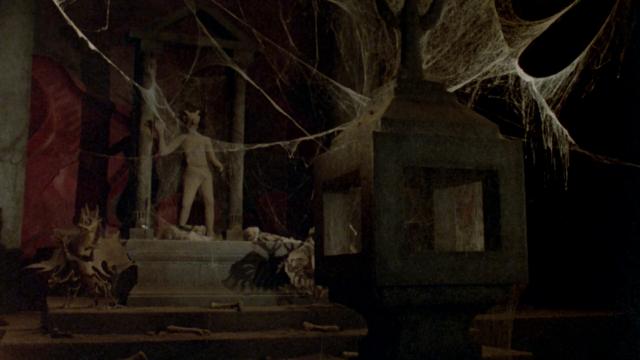 Director Alfredo Zacarías (The Bees) gives this film a strong opening as a preternaturally powerful (or perhaps possessed) woman battles hooded cultists in a torchlight cavernous lair. The scene is complete with one-handed neck breaks (by the woman), some robe-tearing rapey boob-loosing exploitation shots typical of the 80s (e.g., The Haunting of Morella), and an awesomely campy-gory shot as her hand is chopped off with an ax leaving it to crawl off on its own! PS—This will be the highlight of the movie.