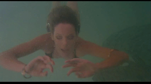 Mountolive’s (John Standing; The Elephant Man) manor is festooned with ancient artwork and overrun with cats. Like Amityville real estate, the house (or an occupant) takes malevolent action against its guests in a most unspectacular fashion typical of 70s cinema (or perhaps even 60s). A scaldingly hot shower hardly raised this filmgoer’s brow, the pool scene lacked the desired impact (e.g., a lackluster drowning), and no one ever cares when someone chokes to death on their dinner or gets chased by a pack of dogs. The only worthy death scene was the fireplace immolation (and seeing the remains), the tracheotomy was moderately effective, and the impaling mirror scene was a callback to Suspiria (1977).