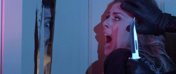 Lots of warm neon lighting, great 80s synth scoring, full frontal nudity (Tristan Risk; ABCs of Death 2, American Mary), a gruesome face chopping and some melodramatic dialogue get this film off to interesting (if not stimulating) start… and that’s just in the first few minutes!