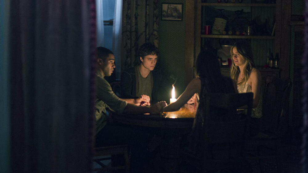 Three students—Elliot (Douglas Smith; Ouija, Stage Fright, Antiviral), John (Lucien Laviscount; Scream Queens) and Sasha (Cressida Bonas)—rent an old house with a dark past that comes to haunt them. We’ll learn some “rules” about this evil phantom, but the movie will quickly forget them as if they never mattered.